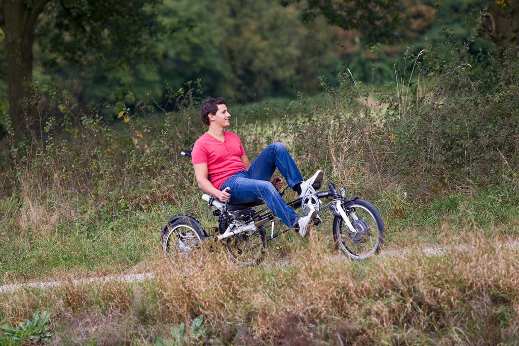 Van Raam driewielfiets Easy Rider Sport Standaard voorzieningen BagagerekInstelbare zithoek en hoogteZitting maat LLengte instelbaar voor persoon van 1.50m tot 2.00mMilieuvriendelijke poedercoatingParkeerremSlotStuurbegrenzerVering in het frameVerlichting Voordelen Met sportief onderstuurMet comfortabele zitting met rugsteunModern vormgegeven ligfietsZowel sportief als recreatief fietsenVering zorgt voor extra comfortKan door normale deurMakkelijk op- en afstappen Zand Stuur Contact